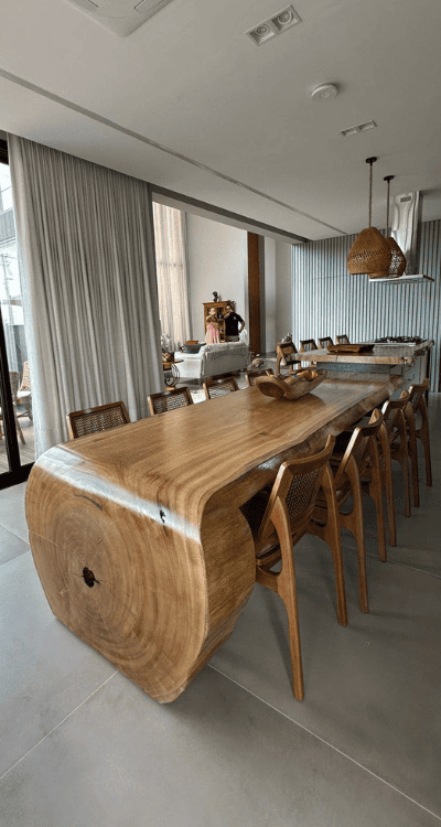 Cada projeto que criamos nasce de um encontro entre a natureza e a inspiração humana. A madeira que utilizamos carrega anos de vida, marcada por veios, curvas e texturas únicas — e nossa missão é preservar essa história enquanto a transformamos em algo novo. Não criamos apenas móveis: criamos conexões, memórias e espaços que contam histórias.